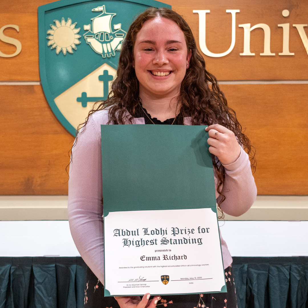 Emma Richard, who completed a double major in Criminology and Criminal Justice and English Language and Literature, was honoured to receive the Abdul Lodhi Prize for Highest Standing in Criminology and Criminal Justice.