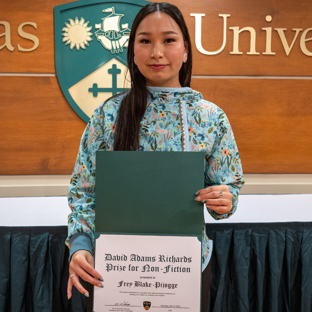 For Frey Blake-Pijogge, who received the David Adams Richards Prize for Non-Fiction, receiving an academic excellence award is a highlight that marks their pursuit of excellence in academia.